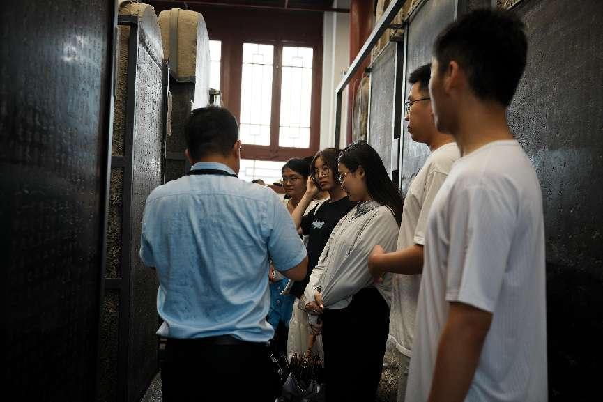 在講解員的帶領(lǐng)下,師生先后觀摩學(xué)習(xí)了《石臺(tái)孝經(jīng)》《官箴碑》等與廉政文化相關(guān)的數(shù)十方古代碑刻,通過一個(gè)個(gè)承載“廉潔”重任的文字、一面面跨越歷史的碑刻,感受孝治、勤儉、修身、公廉等優(yōu)秀廉政文化的獨(dú)特魅力。
